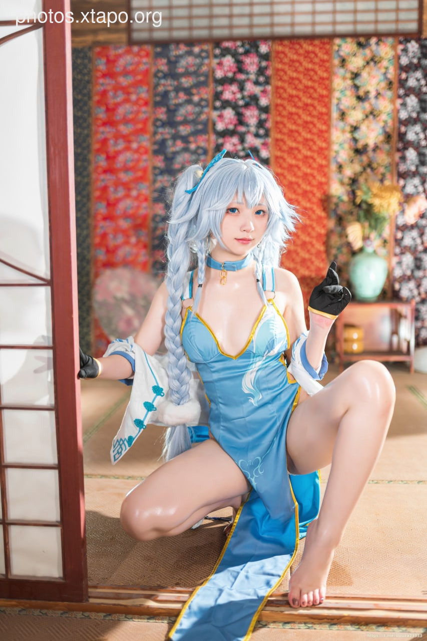 A young woman poses confidently in a denim jacket and shorts against a graffiti-covered wall.