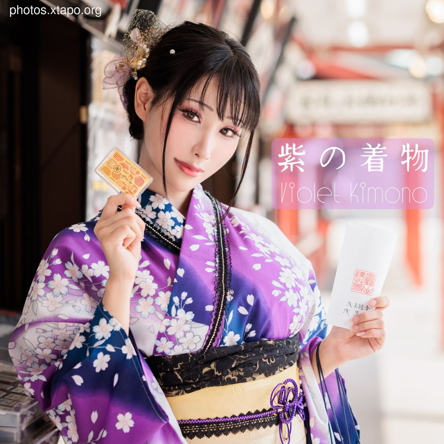 A young woman with long black hair is lying on a bed. She is wearing a white and black polka dot bikini. She is smiling and making a heart shape with her hands.