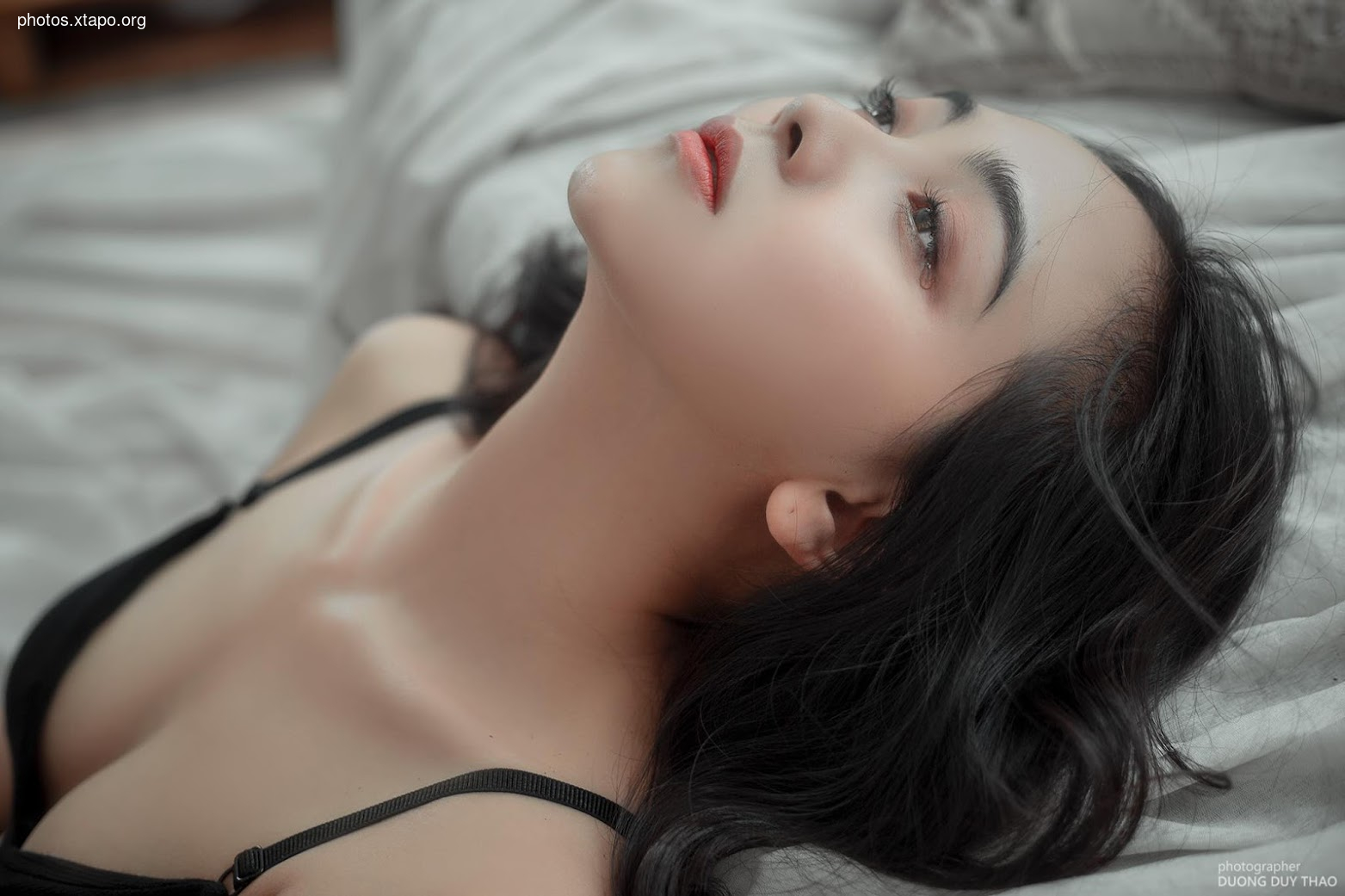 A woman’s legs and feet in white stockings and black and white striped high heels, walking on a paved walkway.