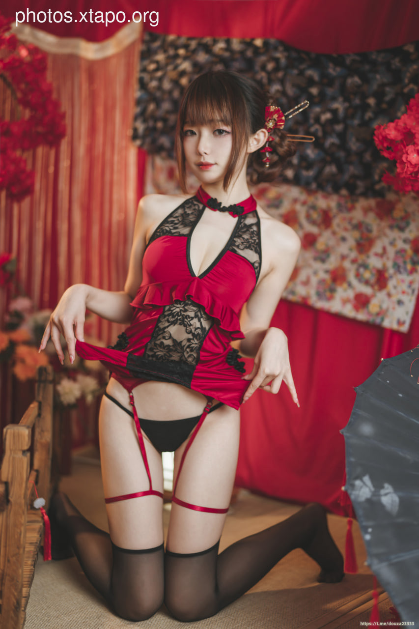 A young woman lies on a bed in her lingerie.
