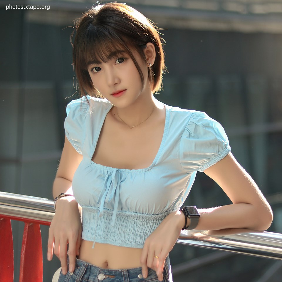 A stunning young Asian woman with long brown hair poses in black lingerie. She has a delicate necklace and a small tattoo that says