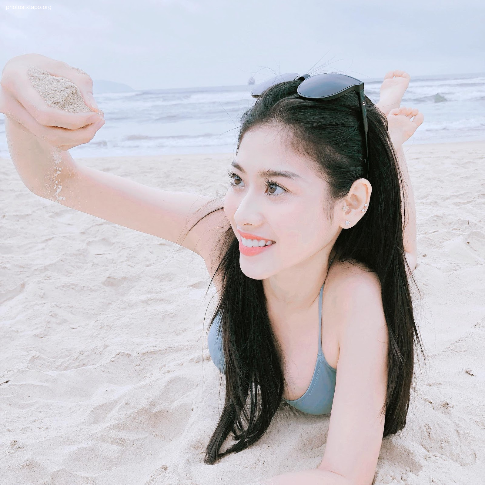 A playful young woman in a sporty schoolgirl outfit poses against a backdrop of ornate golden wings. She’s captured in a moment of cheeky charm, exuding youthful energy.
