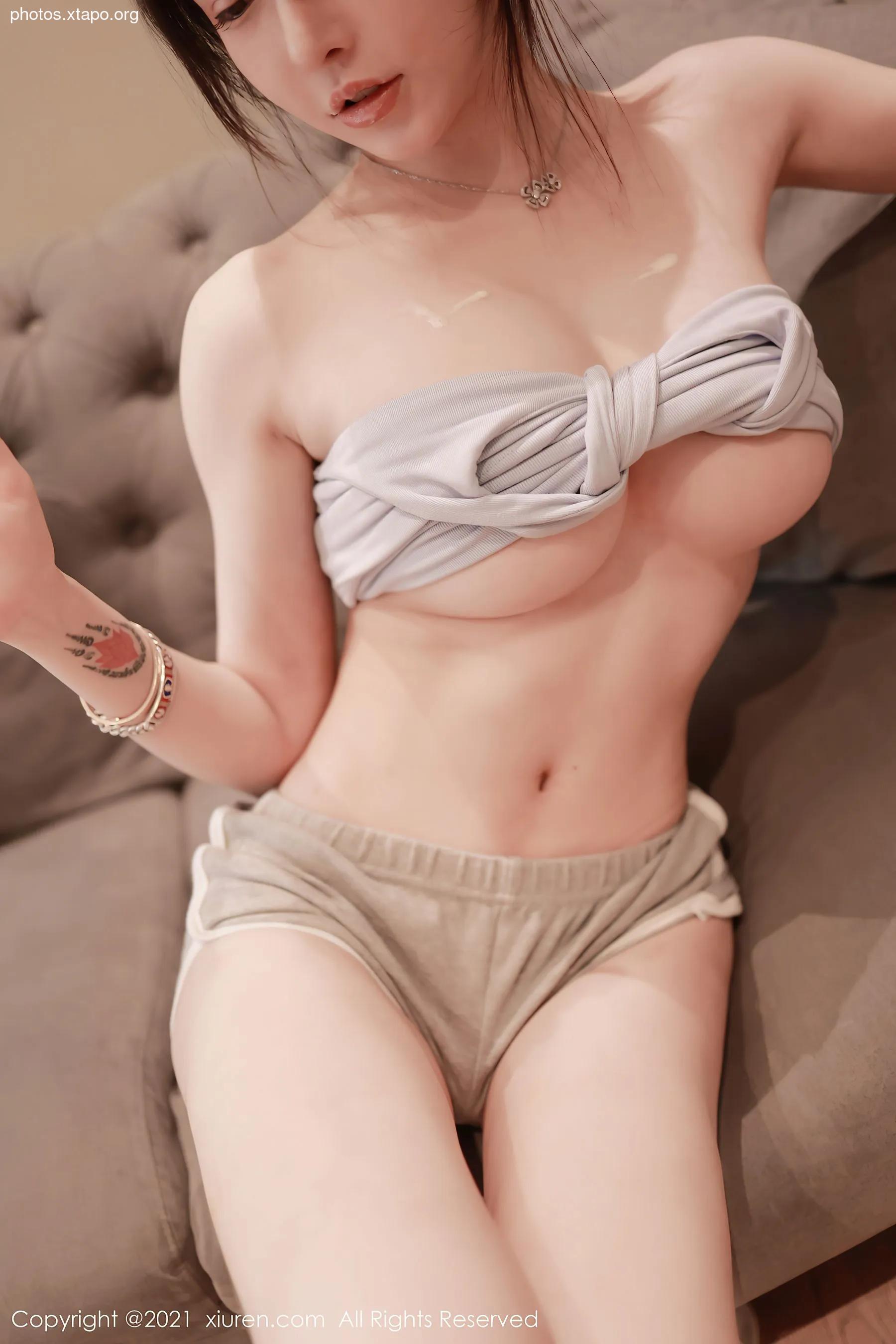 A woman in a Santa hat and lingerie poses playfully by a Christmas tree. She is wearing red fishnet stockings and a red lingerie set. The image is set in a festive environment with snow and Christmas decorations.