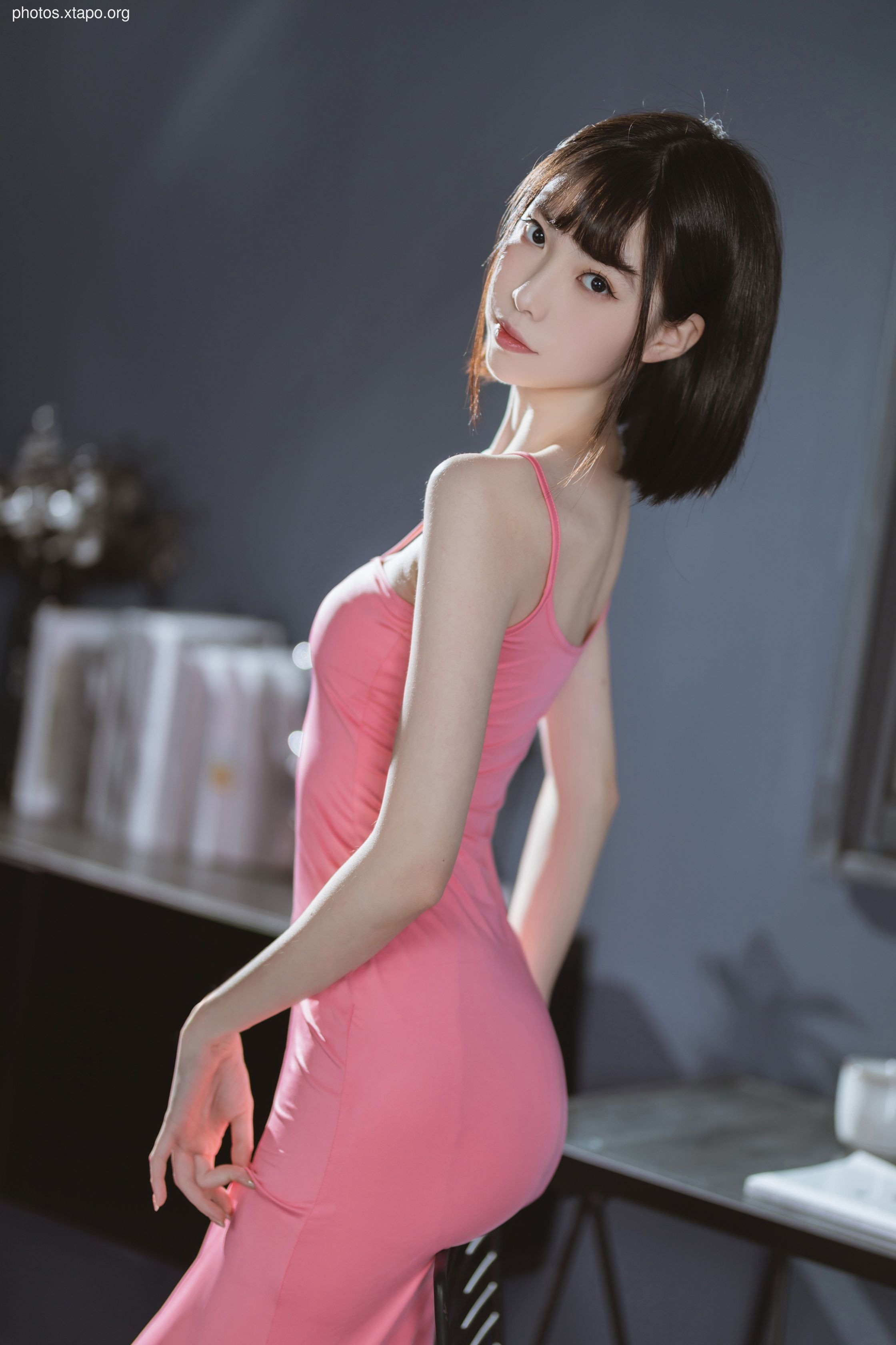 A young woman sits on a bench near a window, wearing a black hoodie and red shorts. She is looking at the camera.